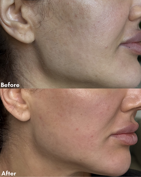 None—skin may be slightly red or sensitive immediately after, but this typically resolves within a few hours.